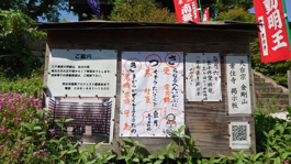 6月6日は、護摩供養のあと火焔ボードの除幕式がありました。ボードの前に立ち、立剣と羂索 (けんさく) の位置に手を合わせて、ハイ・ポーズ!あなたも不動明王に、へ~ん し~ん!